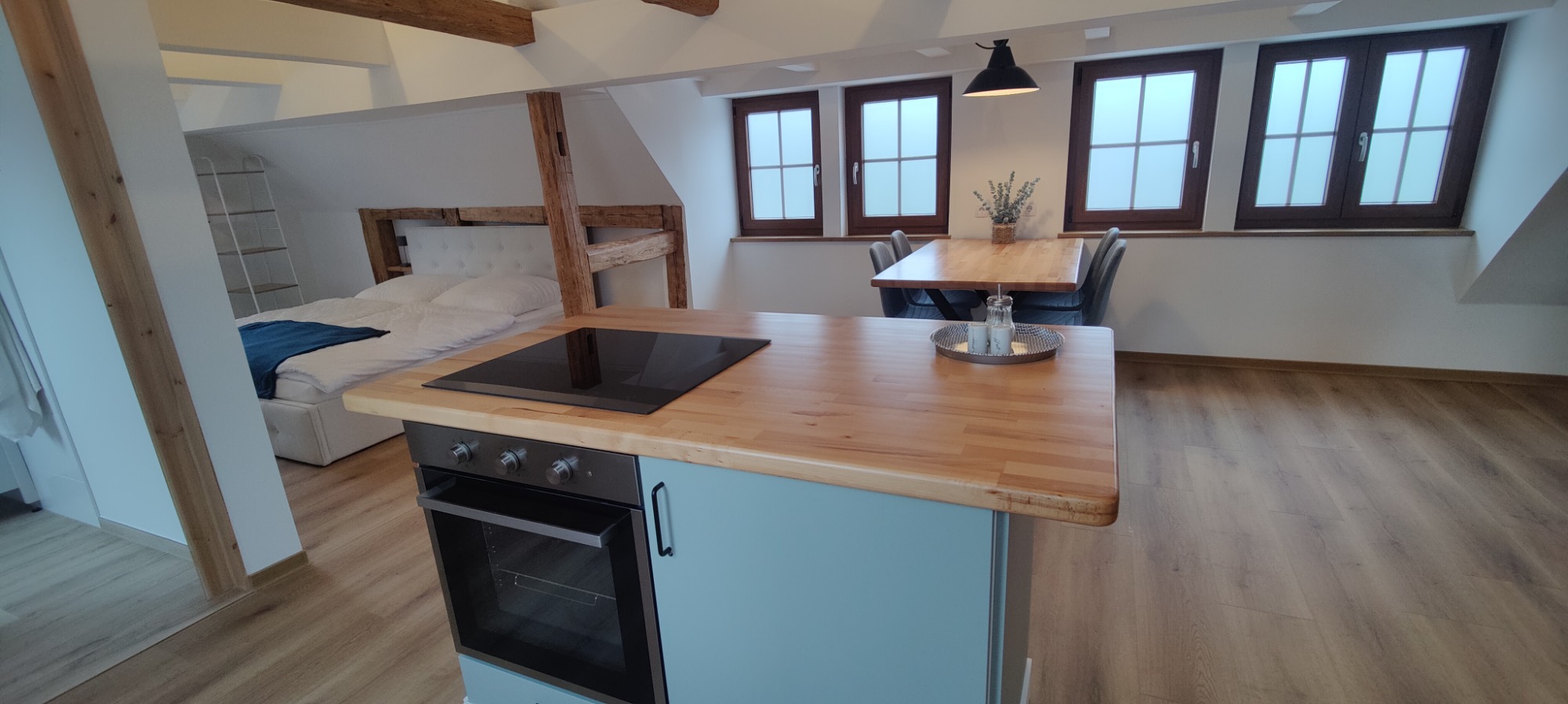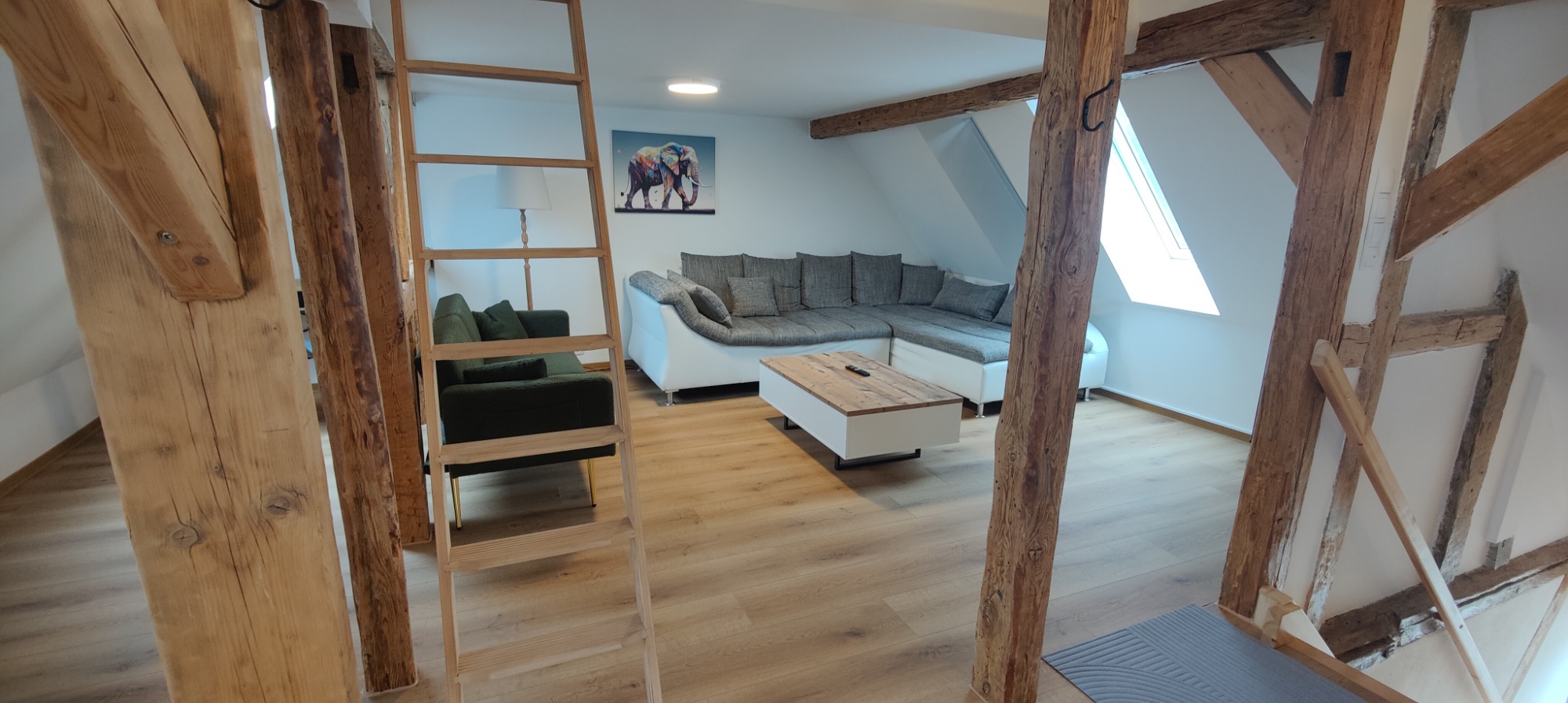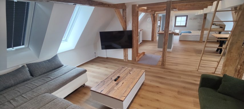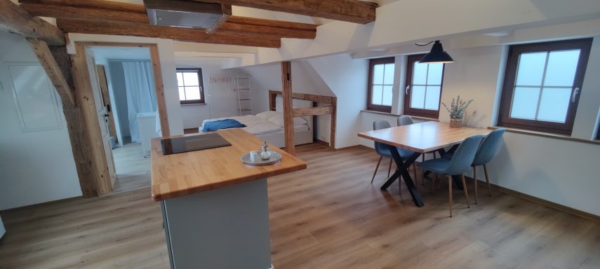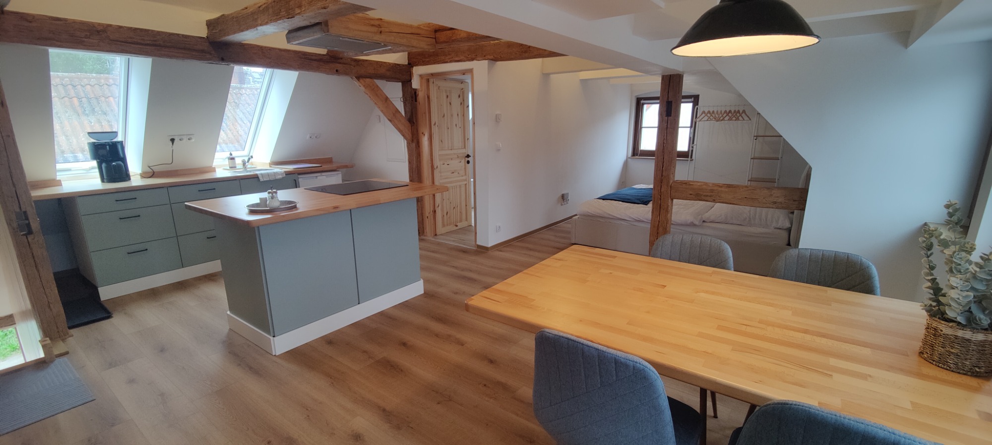 Unsere gemütliche Ferienwohnung 3 bietet Platz für bis zu 4 Personen (2 Erw.+2 Kinder oder 3 Erw. )und ist ideal für einen entspannten Urlaub. Die Wohnung ist vollständig ausgestattet und verfügt über ein komfortables Schlafzimmer, Schlafboden, ein modernes Bad sowie eine offene Küche mit Wohnbereich. Genießen Sie die ruhige Lage und die Nähe zu lokalen Attraktionen. Ob für einen Kurztrip oder einen längeren Aufenthalt – Wohnung 1 ist der perfekte Rückzugsort für kleine Gruppen oder Familien!o.